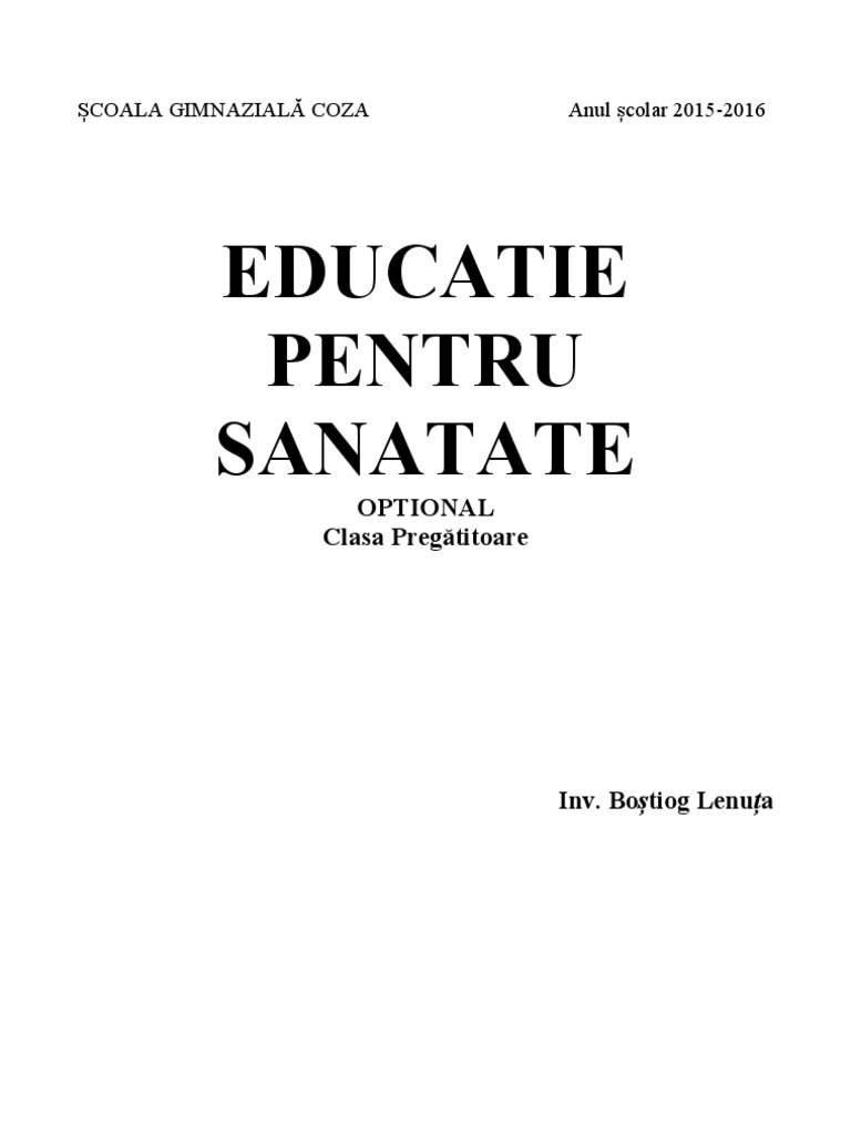 Programa Educatie Pentru Sanatate Clasa Pregatitoare